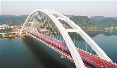 3日清晨,施工中的官塘大桥沐浴在阳光下3日清晨7点,迎着刚升起的太阳,工人们走上官塘...